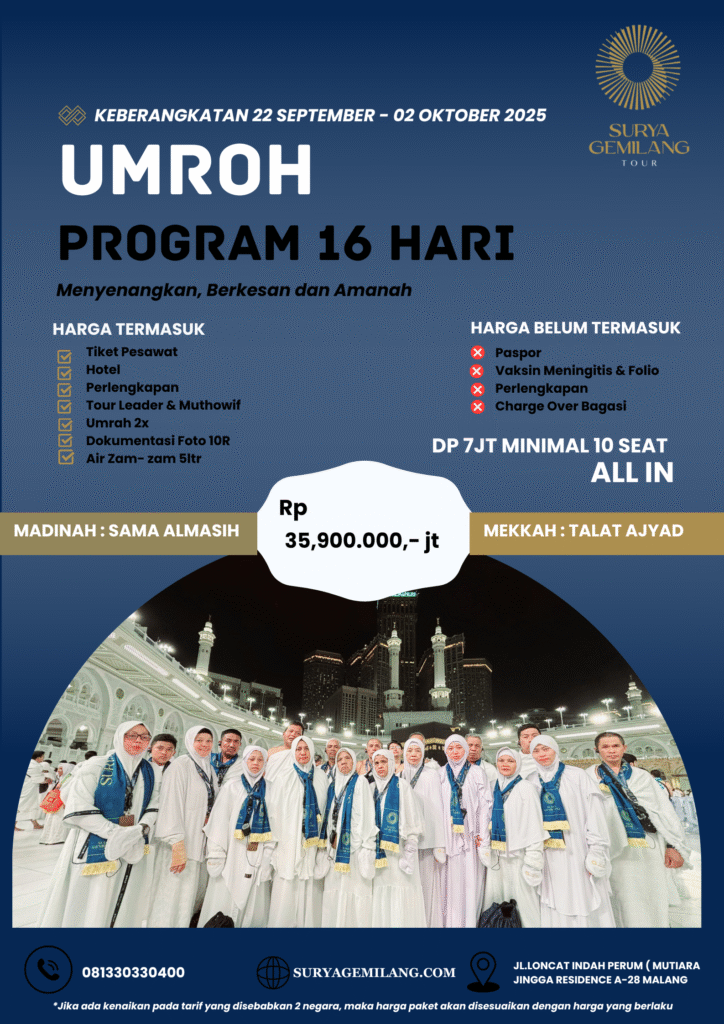 Keberangkatan : (*Dapat Berubah Sesuai Ketentuan Yang Berlaku)
